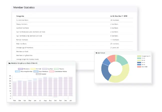 Quickly check your studio's health at a glance with visual metrics. Get access to an intuitive dashboard that displays overviews of your business performance. Easily spot monthly bright spots and areas that need to be improved.